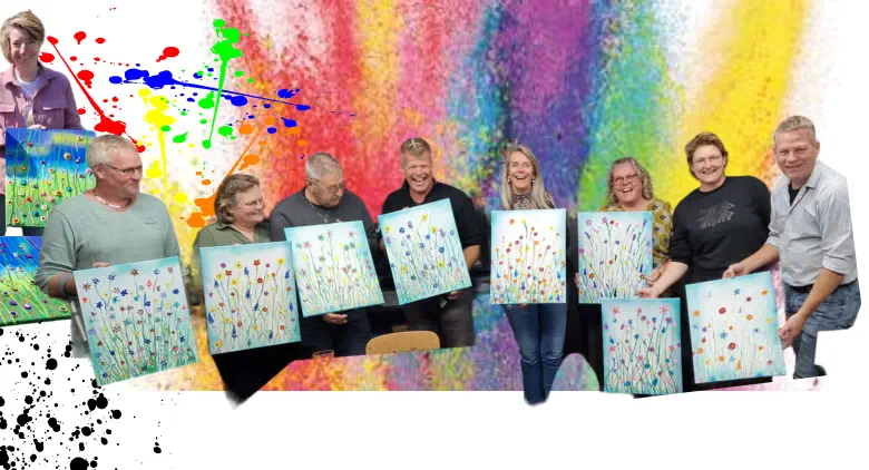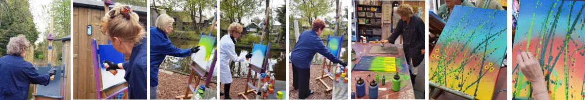 Laat je verrassen door deze eenvoudige techniek met een spectaculair resultaat!Werk met spuitverf, trek slierten en maak spetters en dotjes. Laat je creativiteit de vrije loop en leef je lekker uit in deze kleurrijke workshop.Door je verbeelding te laten stromen, ontstaat er onder jouw handen een kunstwerk vol frisse kleuren en een levendige energie.Wat je krijgt:•Een spetterende ervaring en de vrijheid om je eigen creatieve pad te volgen.•Een katoenen doek van 40x50 cm. inclusief de spuitverf en een pasteuse verf Dit alles voor slechts € 50.00 per persoon! Geniet van 3 tot 3,5 uur vol kleurrijke inspiratie en creativiteit, samen met een groep van maximaal 10 personen.