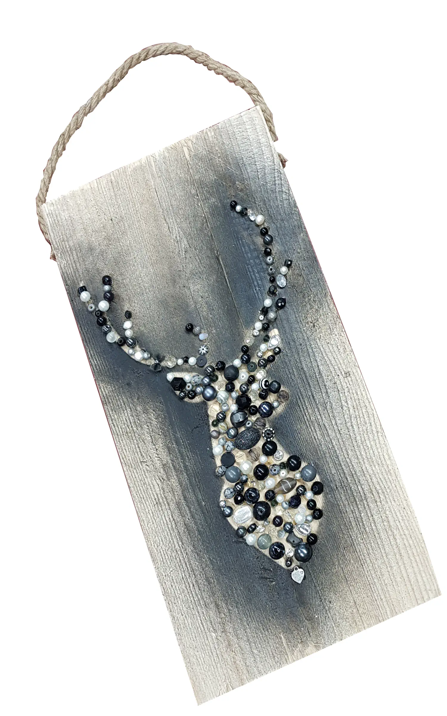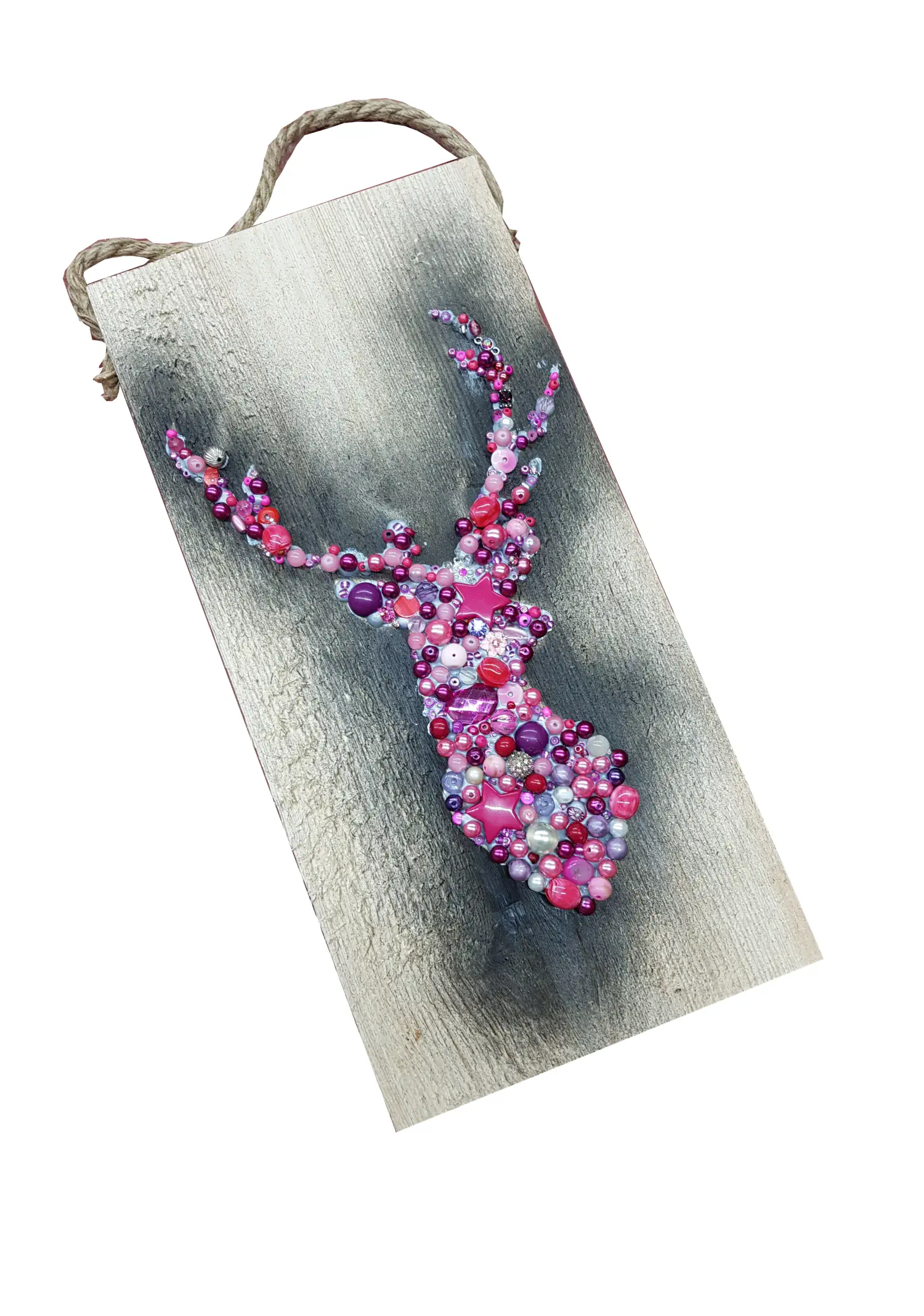 op een stuk steigerhout van 20 x 40 cm.